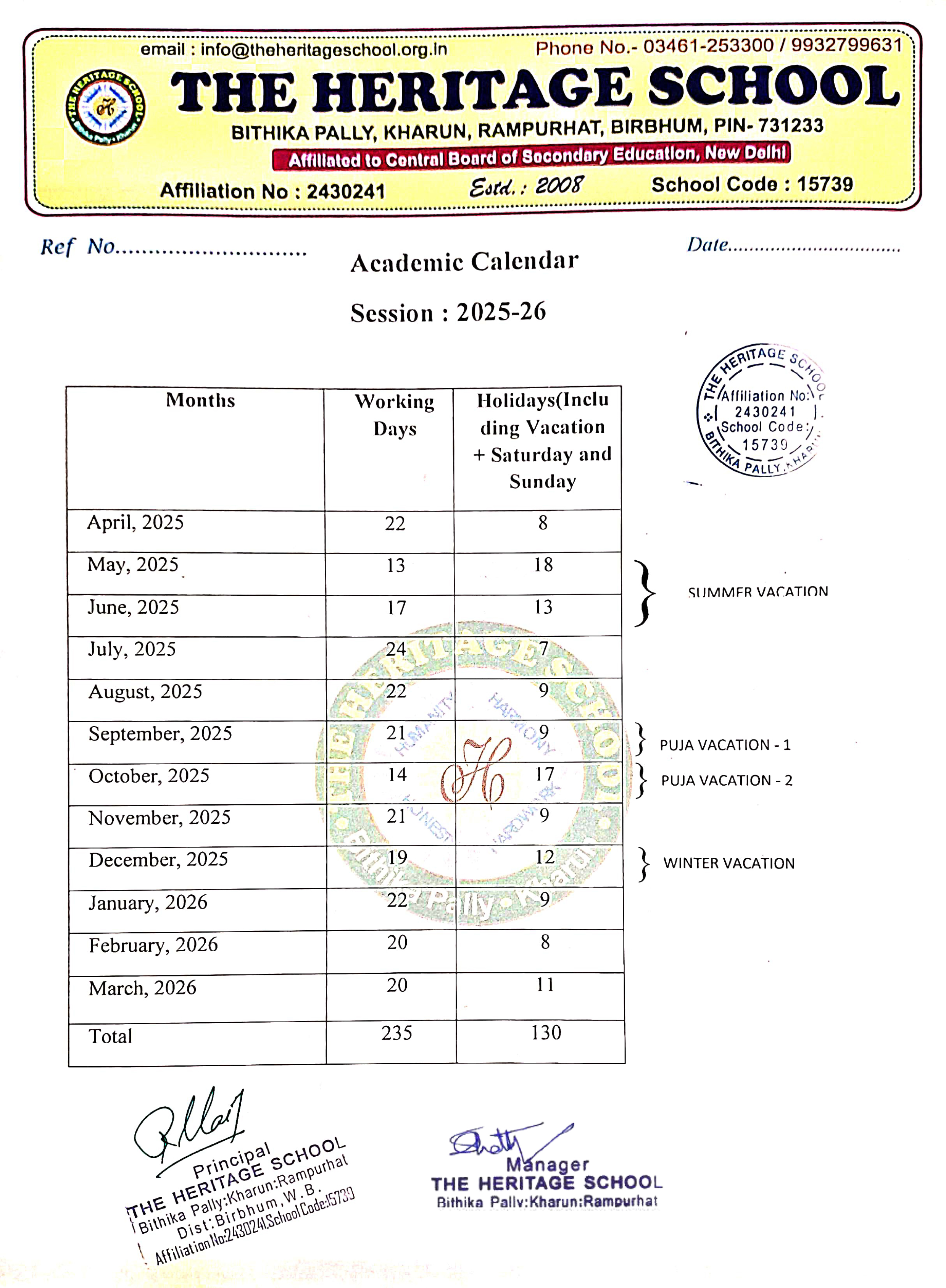 | 6 | SCHOOL EMAIL ID | office.theheritageschool@gmail.com, info@theheritageschool.org.in |